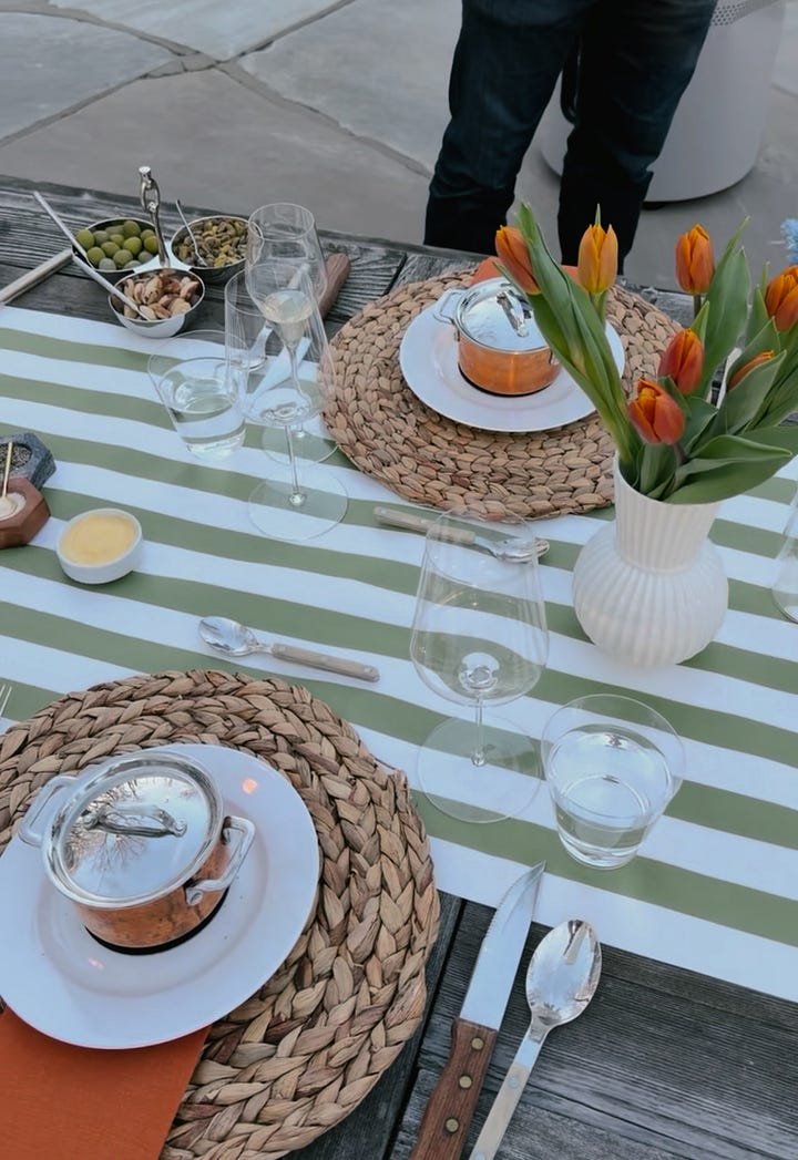 With only an afternoon to pull things together, we did what any reasonable person would do, we made it a dinner party. A spontaneous text to my in-laws was all it took, and just like that, our quiet Saturday al fresco turned into something worth gathering for. I truly could not have handpicked better in-laws if I tried. They are the rare, wonderful kind of people who show up with good energy and zero fuss, exactly who you want around a candlelit table on an unexpectedly beautiful March evening.